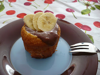 Ha kész vannak a muffinok, kicsit várjunk, amíg kihűlnek, majd vágjuk ki a tetejüket és töltsünk mindegyikbe a masszából. Tetejére a maradék banánból tegyünk dísznek.