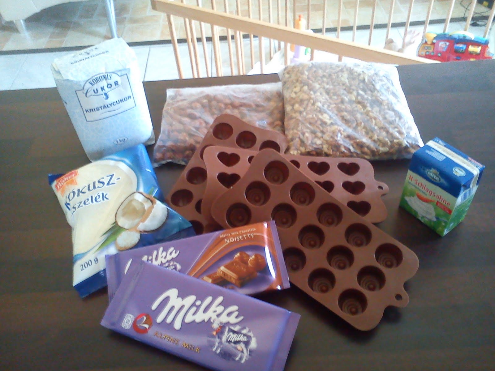 Igazából arról van szó, hogy még márciusban vettem 3 bonbon formát, de azóta valahogy nem jutottam oda, hogy meg is töltsem őket. Sajnos :( Vettem bonbonos könyvet, naponta tanulmányozom a két kedvenc bonbonos blogomat, az egyik Praliné Paradicsom és a másik pedig Bonbon mánia. Nagyon fantasztikus kis csodák van ott, rengeteg időt lehet ott eltölteni!! :)