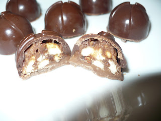 A csokoládé ganache-hoz a tejszínt forralásig melegítjük, majd az apróra vágott csokoládét beleöntjük, és amíg fel nem olvad, addig kevergetjük. Ha kicsit kihűlt, hozzákeverjük az apróra tört kekszet és a mogyorót. Felhasználásig hűtőbe tesszük.